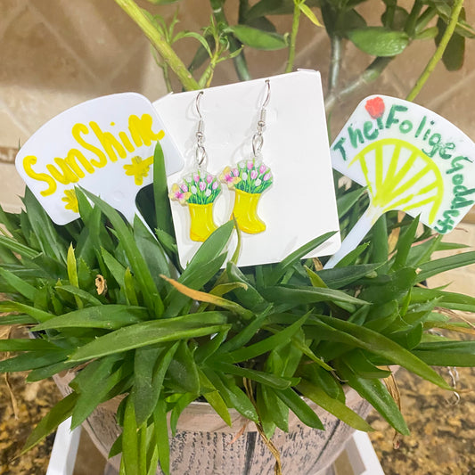 Spring Rain Boot Flower Earrings Colorful Acrylic Dangle Earrings for Garden Lovers, Floral Statement Jewelry, Cute Springtime Accessories