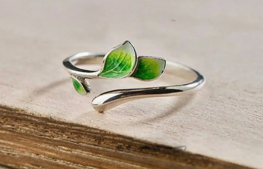 Adjustable Green Leaf Ring – Nature-Inspired Elegance for Every Hand